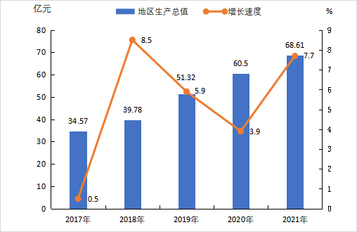 图1 2017—2021年全县地区生产总值及其增长速度