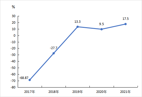 图4 2017年—2021年全县固定资产增长速度