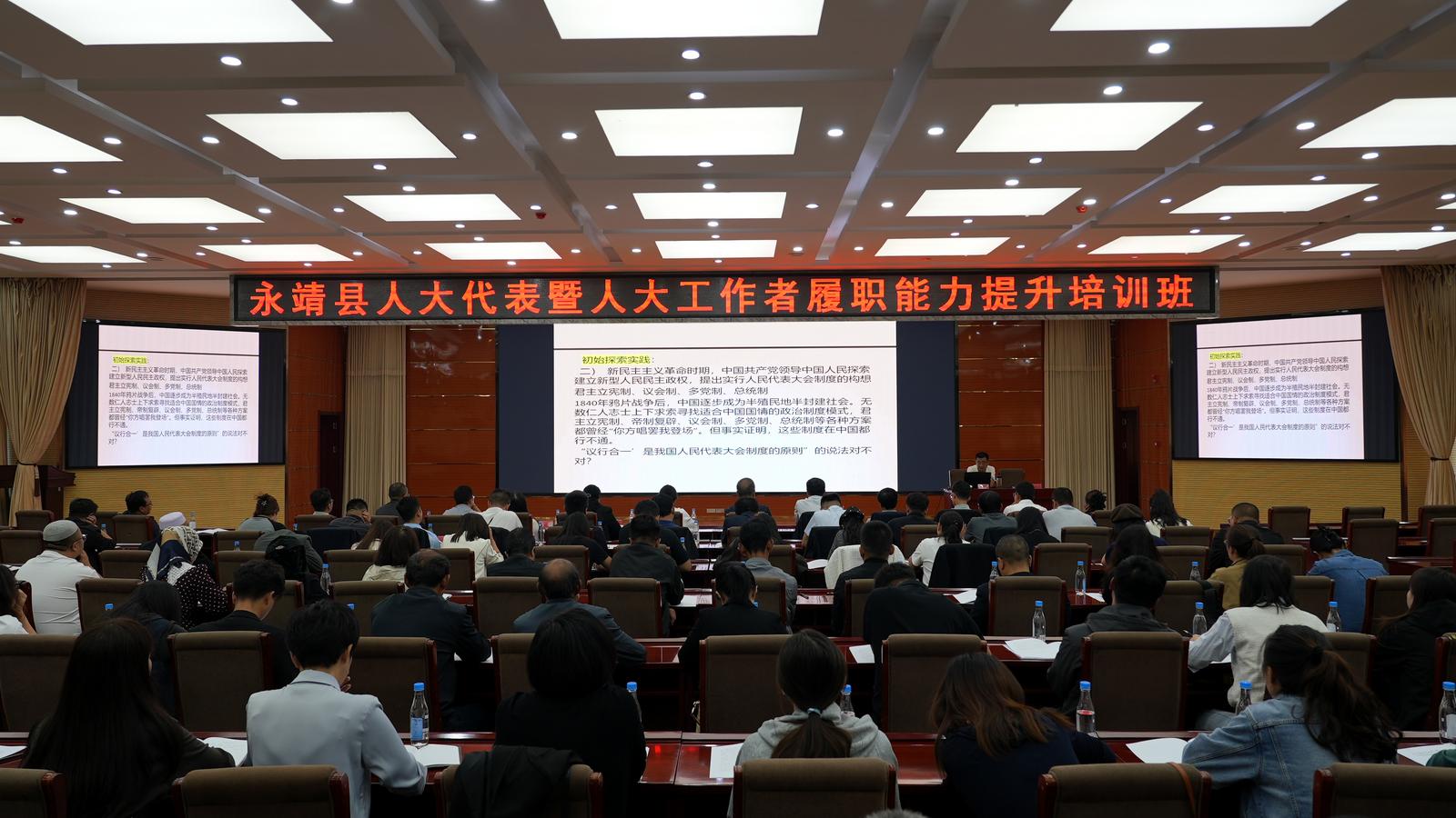 为全面提升人大代表和人大工作者依法履职能力与业务工作水平,更好地履行宪法法律赋予的职责,促进新时代人大工作高质量发展,9月25日至26日,永靖县举办人大代表和人大工作者集中视察暨履职能力提升培训班。县人大常委会主任张丰忠,副主任郝永珍、马晓辉、刘永兰、王正礼参加培训。县委常委、副县长马兆海陪同视察并出席政情通报会。