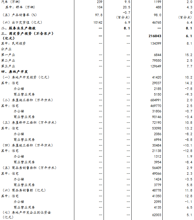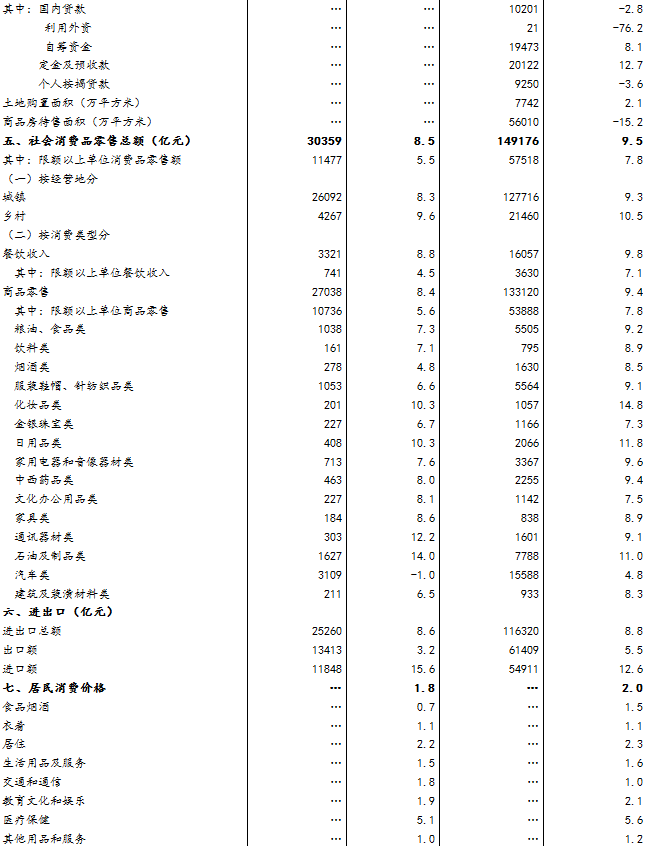 (1)规模以上工业增加值及其分类项目增长速度按可比价计算,为实际增长速度;其他指标除特殊说明外,均按现价计算,为名义增长速度。