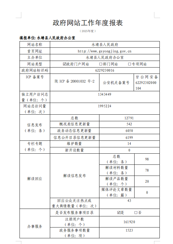 2025年度永靖县人民政府网站工作年度报表