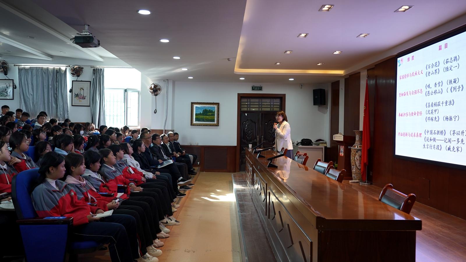 为深入学习贯彻党的二十大及二十届三中全会精神,全面落实习近平总书记关于思政课建设的重要指示精神,扎实推进大中小学思政课一体化建设,10月15日,永靖县组织名校长、名师及退休教师组成宣讲团,先后走进永靖中学、移民中学及刘家峡中学,开展“思政课大讲堂”宣讲活动。