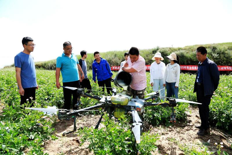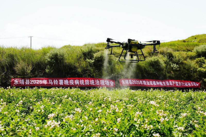 为扩大防控覆盖面,县农业农村局统筹调配防控资源,向全县9个乡镇发放马铃薯晚疫病防控农药0.6吨,并以坪沟村飞防作业为示范,组织农技人员深入田间地头,现场指导群众掌握科学施药方法,引导农户同步开展大面积群防群控,形成“科技飞防+群众联防”的立体防控格局。