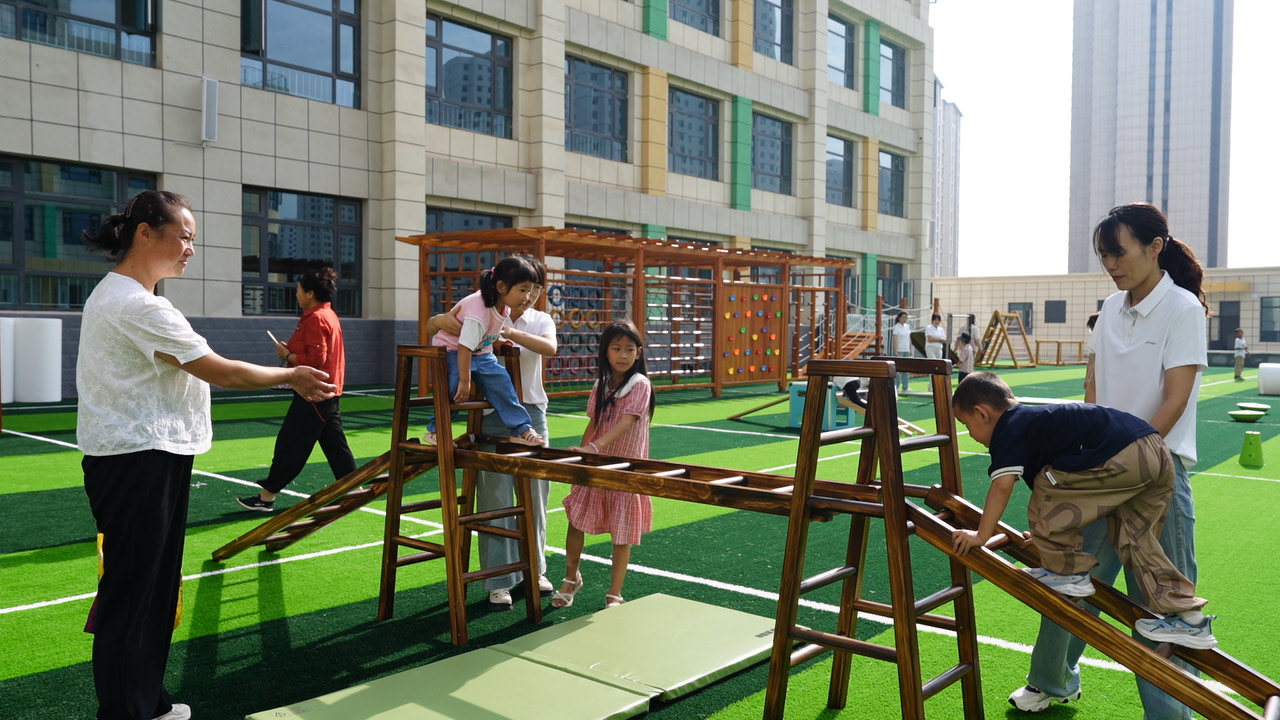 “寝教卫一体”设计的智慧教室,分区科学化,教具设施完善。而在户外酷跑运动器械、户外大拱龙、大渡桥等设施,可以让孩子们在大自然中尽情释放活力。楼顶操场更是独具匠心充分利用空间,确保幼儿全天候、全场景体能锻炼与探索乐趣。室内运动场配备了军警酷跑器械、攀岩教玩具等设备。功能室的配备更是丰富多样,陶艺坊、木工坊、机器人建构室、steam建构室、食育坊、科探馆等一应俱全。值得一提的是,为了给孩子们提供一个安全健康的学习生活环境,幼儿园对每间教室都进行了严格的甲醛检测,目前检测工作已全部完成,所有教室的检测结果均已达标。