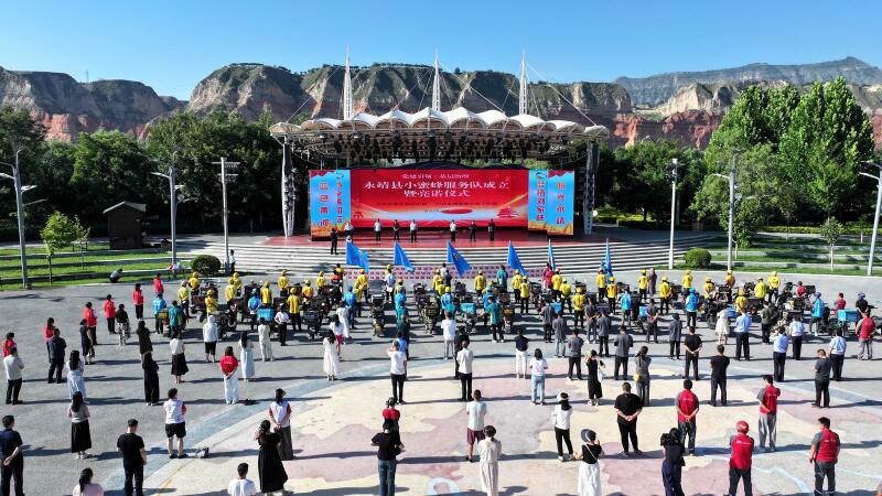 7月30日上午,永靖县小蜜蜂服务队成立亮诺仪式在古城新区彩陶广场举行。县委常委、组织部部长杜俊峰出席仪式并致辞,县人大常委会副主任、县总工会主席刘永兰出席仪式。