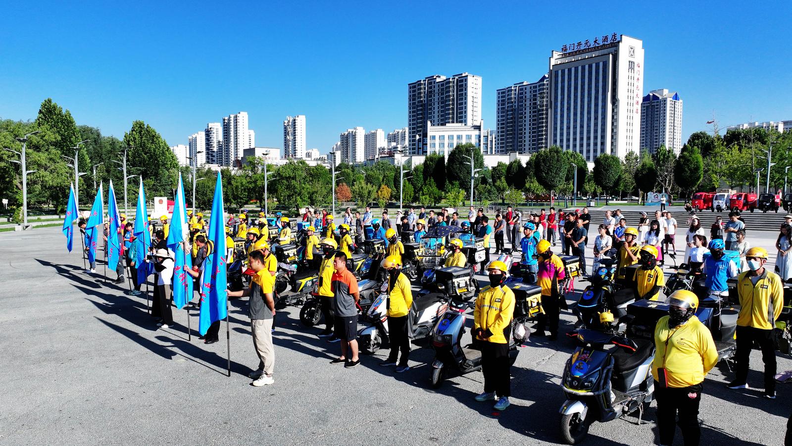 仪式上,为永靖县小蜜蜂服务队颁授了队旗,为流动网格员颁发了聘书,外卖配送员代表和平台企业负责人代表进行了发言。