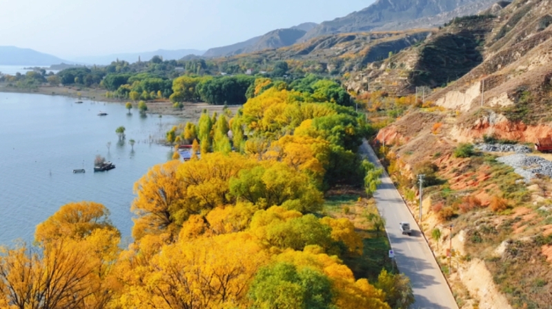 深秋时节,永靖县黄河三湾景区层林尽染、水光潋滟。湾湾相连的岸边褪去盛夏葱茏,白杨、垂柳与各类乡土植被渐次换上金黄盛装,叶片在微风中轻晃,如千万只金蝶振翅;澄澈的黄河水似碧绿丝带蜿蜒穿境,将岸边金黄倒影揽入怀中,水与叶交融成“半河碧水半河金”的诗意画卷。阳光洒落时,光影在枝叶与河面间流转,秋风裹挟着草木清润与河水气息,诉说着黄河岸畔的深秋故事,更映照出二十届四中全会精神在基层落地生根的生动实践。