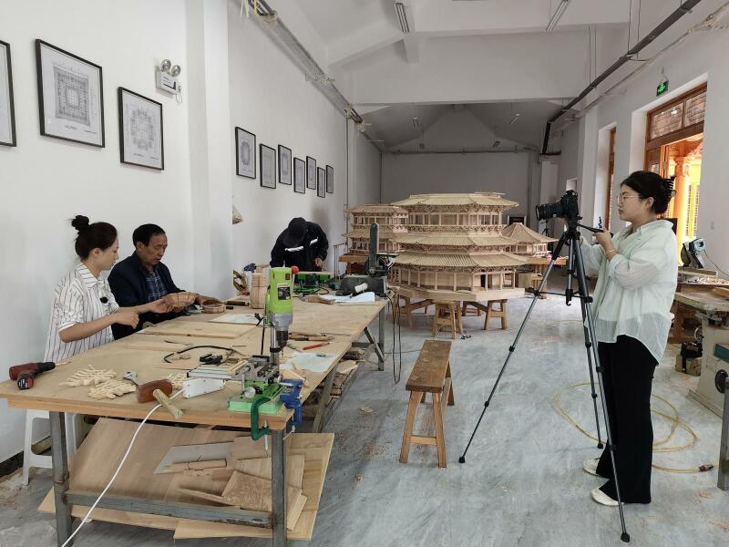 在三塬镇白塔木雕产业园,采访团走进生产车间、展示展厅,与企业负责人、技艺传承人亲切交流,仔细询问木雕技艺传承、产品研发、市场销售及带动群众就业等情况。用镜头捕捉匠人们精雕细琢的瞬间,记录传统技艺在协作帮扶中焕发的新活力。
