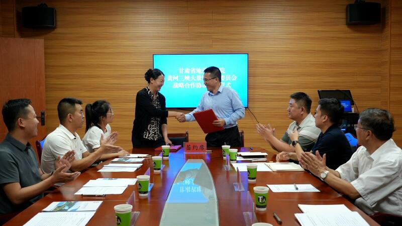 9月12日下午,黄河三峡大景区管委会与甘肃省地质调查院战略合作协议签约仪式举行。甘肃省地质学会秘书长黄万堂,省地调院党委书记、院长王玉玺,副院长翟向华,黄河三峡大景区管委会主任朱晓花,双方单位相关部门负责人及工作人员共同出席仪式。