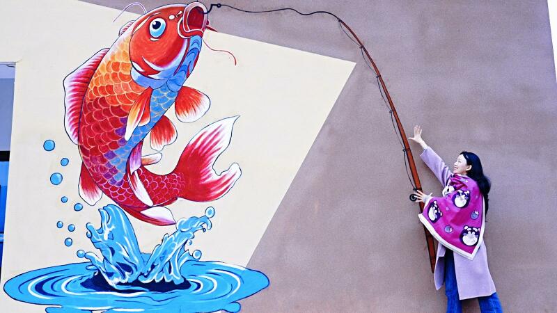 在亲水区域,游客可以喂鸟赏景,成群的候鸟翩跹而至,与游人和谐共处的画面温馨动人。同时,贯穿八百亩鱼塘的观光路也经过精心设计,沿途不仅可以看到波光粼粼的水面,还能欣赏到生动的墙绘艺术,实现了“一步一景,移步换景”的游览效果。