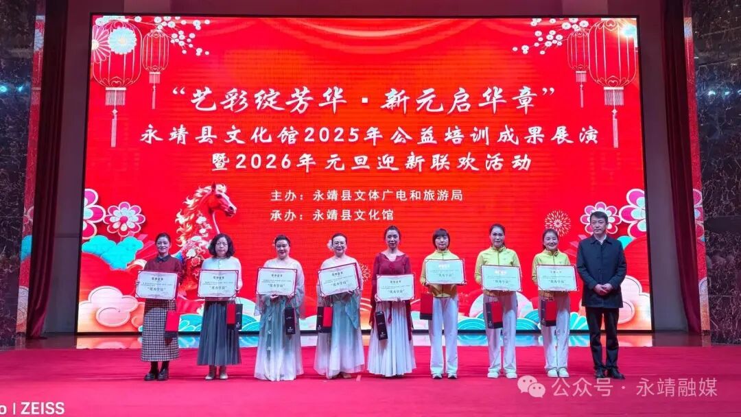 12月26日,“艺彩绽芳华・新元启华章”永靖县文化馆2025年公益培训成果展演暨2026年元旦迎新联欢活动如约启幕,为这座黄河岸边的小城添上了一抹灵动的艺术亮色。