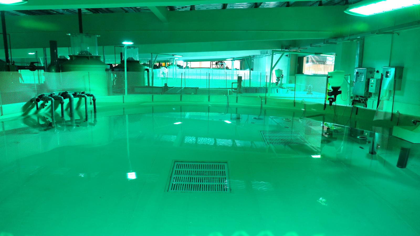 在南美白对虾虾苗中间培育及养殖车间,直径为10米的12座虾池已完成设备安装调试,过滤后的水源经过微粒机进入生物池,经由蛋白分离器吸附混杂在水中的颗粒状的杂质并排除,实现养殖水循环利用。基地养殖采用物联网+智能化操作系统,实现培育及养殖过程自动化、信息化,推动渔业不断向高端化、智能化迈进,为全县渔业转型升级提供有力支撑。