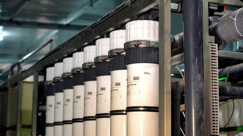 9月19日,走进永靖县陆基循环水智慧水产养殖产业园,三级过滤车间机械轰鸣,源源不断地对地下水进行分级过滤。沙滤车间通过物理拦截方式有效去除水中大于5μm(微米)的颗粒物和悬浮固体,超滤车间30nm(纳米)的过滤孔,可去除原水中的细菌、微生物、病毒等不溶解性的胶体;纳滤车间采用物理分离方式,高效去除原水中高浓度钙离子、镁离子等重金属,为后续养殖提供符合标准的高品质水源。