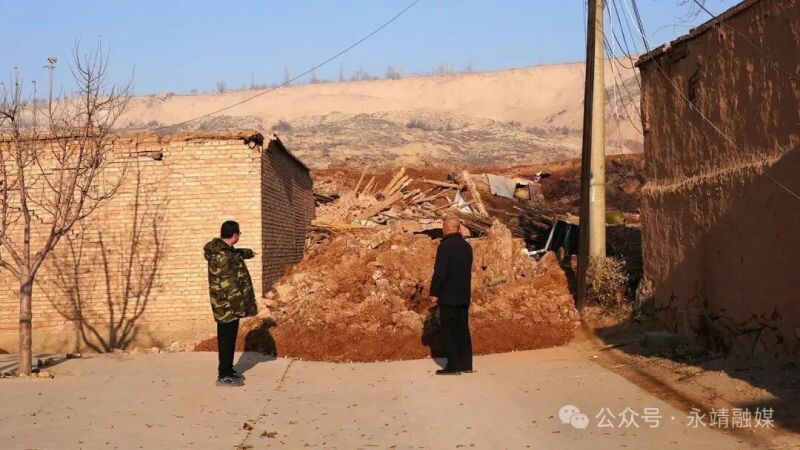 2025年12月10日的巡查,和平日里并无不同,可走到滑坡旧址时,张得元突然发现台塬上出现土石滚落、尘土弥漫的异常迹象。“不好,要滑坡了!”有着多年经验的他瞬间警觉,心里咯噔一下,却没丝毫慌乱——他知道,此刻每一秒都关乎乡亲们的生命安全。来不及多想,他一边快速向村党组织精准上报险情,清晰说明隐患点位置、滑坡迹象,一边朝着附近农户家飞奔,挨家挨户敲门呼喊,督促大家赶紧转移。