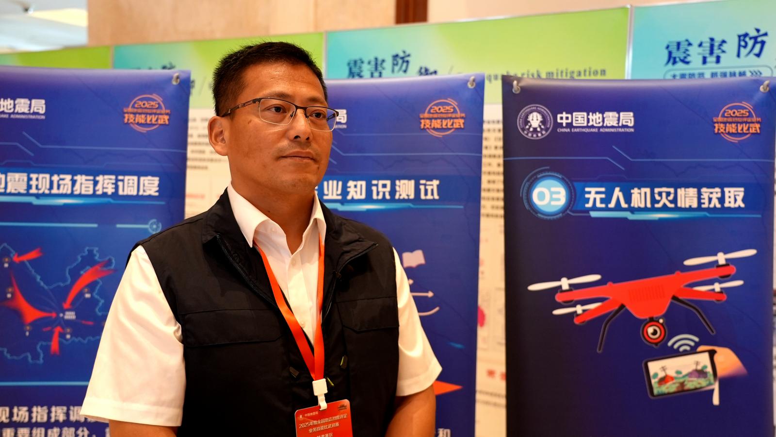 全国地震烈度评定技能比武专家裁判组组长 王东明 全国地震烈度技能比武是我们中国地震局非常重要的一个赛事,本次的甘肃赛区的比武是我们今年的第二场,我们组织这样的比武,主要的目的就是要锤炼一支真正能应急的队伍,关键时刻能够召之即来、来之能战、战之必胜。我们在科目的这个设置方面,我们是本着“仗怎么打,兵怎么练”的原则设置了5个科目,包括灾情的无人机调查和获取,也包括烈度的评定和支持的这个考试,还有指挥决策等科目。保证我们的队员们能够面对任何设定的地震情况,得到真实的灾场情况。