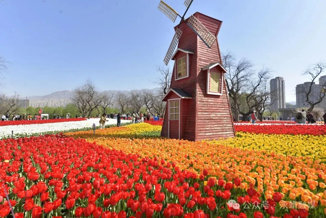 连日来,永靖县刘家峡镇黄河花堤郁金香竞相绽放,五彩斑斓的花海沿黄河岸线铺展,与碧波黄河相映成景,吸引了八方宾客前来赏花打卡,乐享春日美好时光。