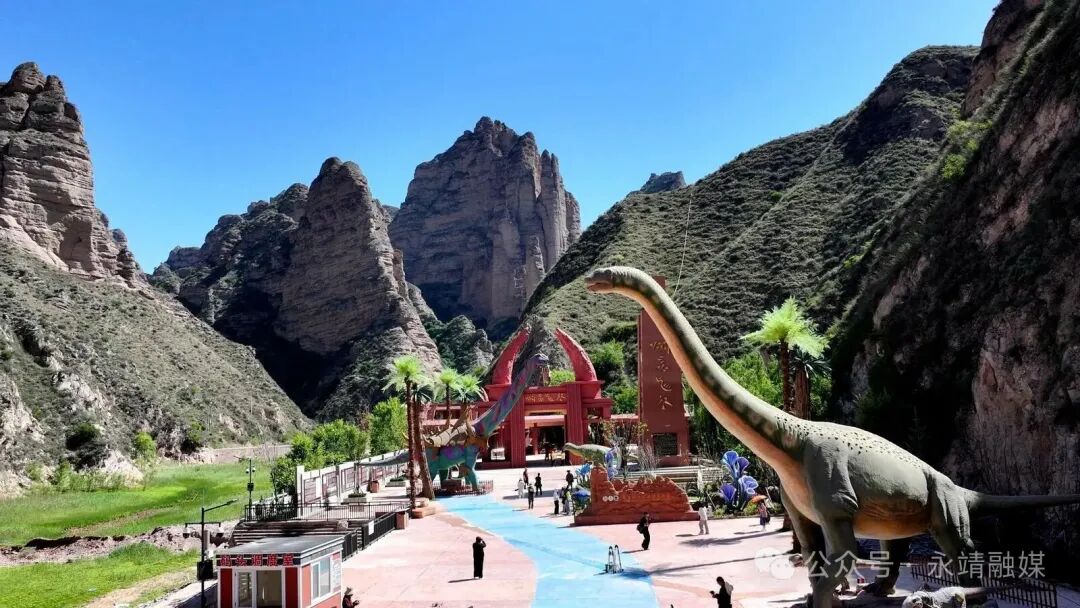炳灵龙谷位于临夏世界地质公园永靖县炳灵石林内,是炳灵寺世界文化遗产旅游区全新打造的沉浸式恐龙主题科普娱乐综合体。景区深度挖掘白垩纪地质文化,也是集科普研学和主题游玩于一体的国内首个户外恐龙“活化”博物馆 。景区共有冒险港、杉树林、晶矿沟三个板块。其中,冒险港依托早白垩纪地质风貌,以恐龙静态展示、互动体验为核心,搭配仿真植物与层叠岩石景观,打造沉浸式史前探秘空间,仿若置身远古恐龙世界。景区内赤壁丹崖景观记录了上亿年地质变迁,成为青少年理解地质历史的直观教材。