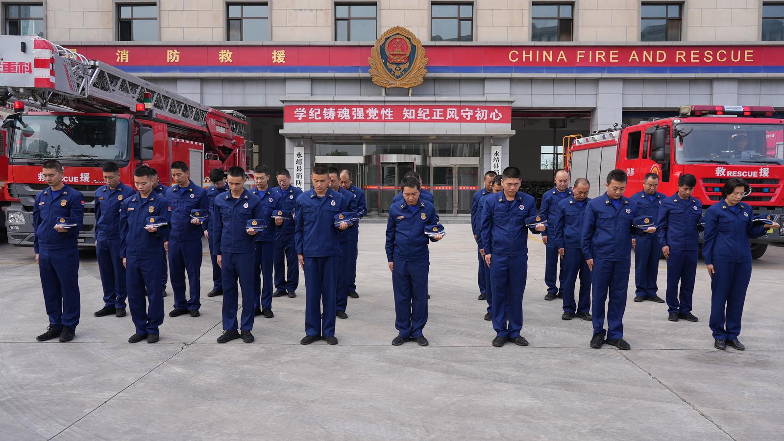 在县消防救援大队全体人员脱帽肃立,向革命先烈默哀致敬。消防指战员们深刻缅怀了英烈的不朽功绩,并誓言将继续发扬英烈精神,忠诚履职,保卫人民安全。
