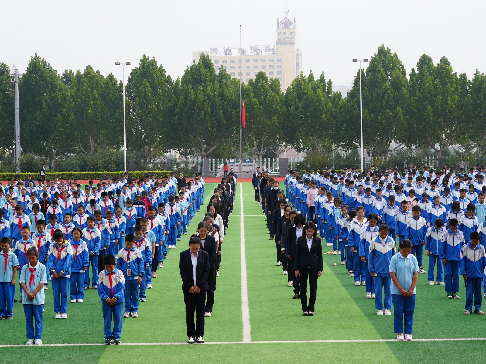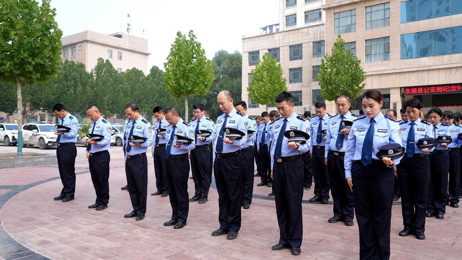 上午9时,随着防空警报声在永靖县上空响起,全县上下瞬间陷入肃穆之中。公安局全体班子成员及局机关各部门民警代表共计40余人,在公安局前广场集体默哀。这一刻,万籁俱寂,人群肃立,车辆鸣笛,以此哀悼在抗日战争中英勇牺牲的先烈和无辜遇难的同胞。