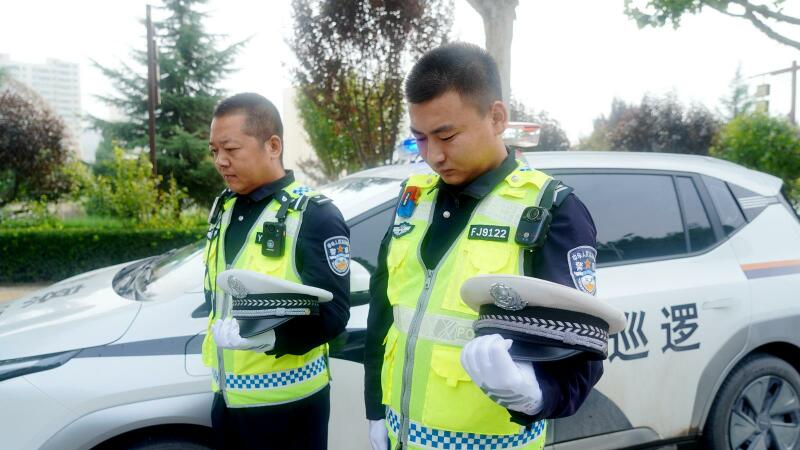 与此同时,全县各交警执勤点也同步进行了默哀活动。在城区各主要路口,执勤交警统一脱帽肃立,低头默哀,过往车辆和行人也纷纷停下,共同缅怀那段艰难岁月。直至警报解除,交警们迅速恢复指挥,交通秩序井然有序。