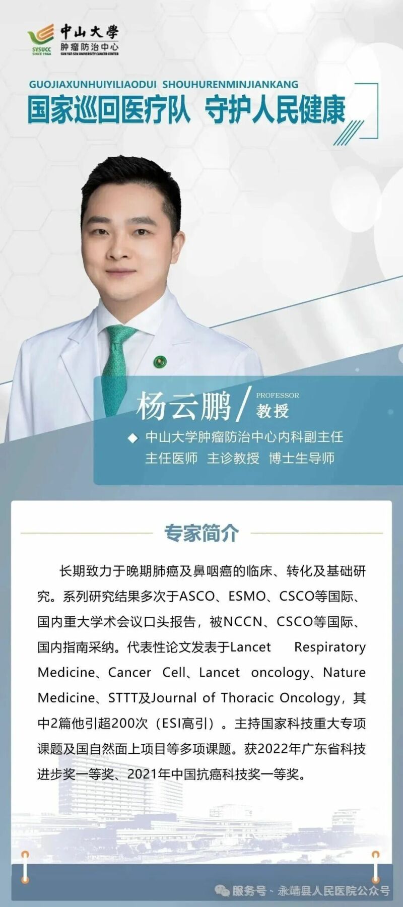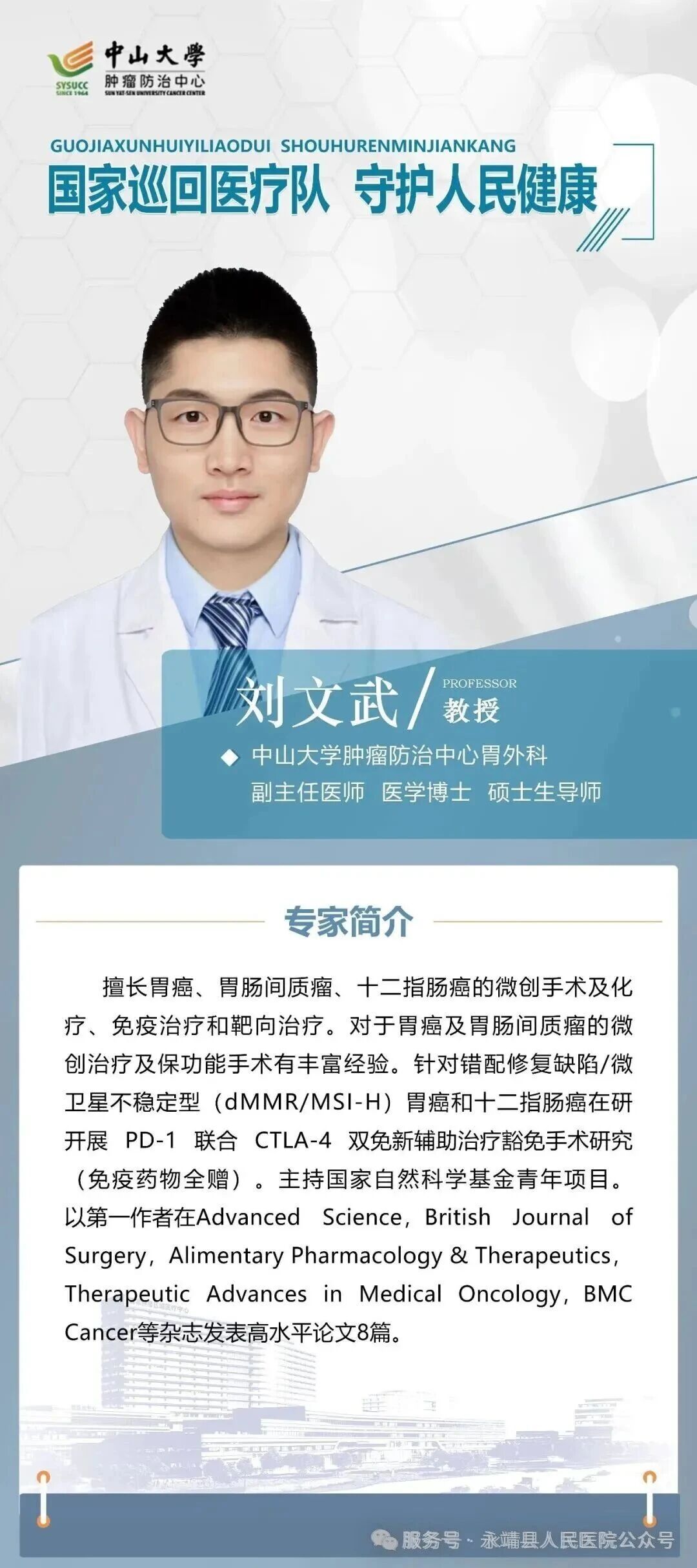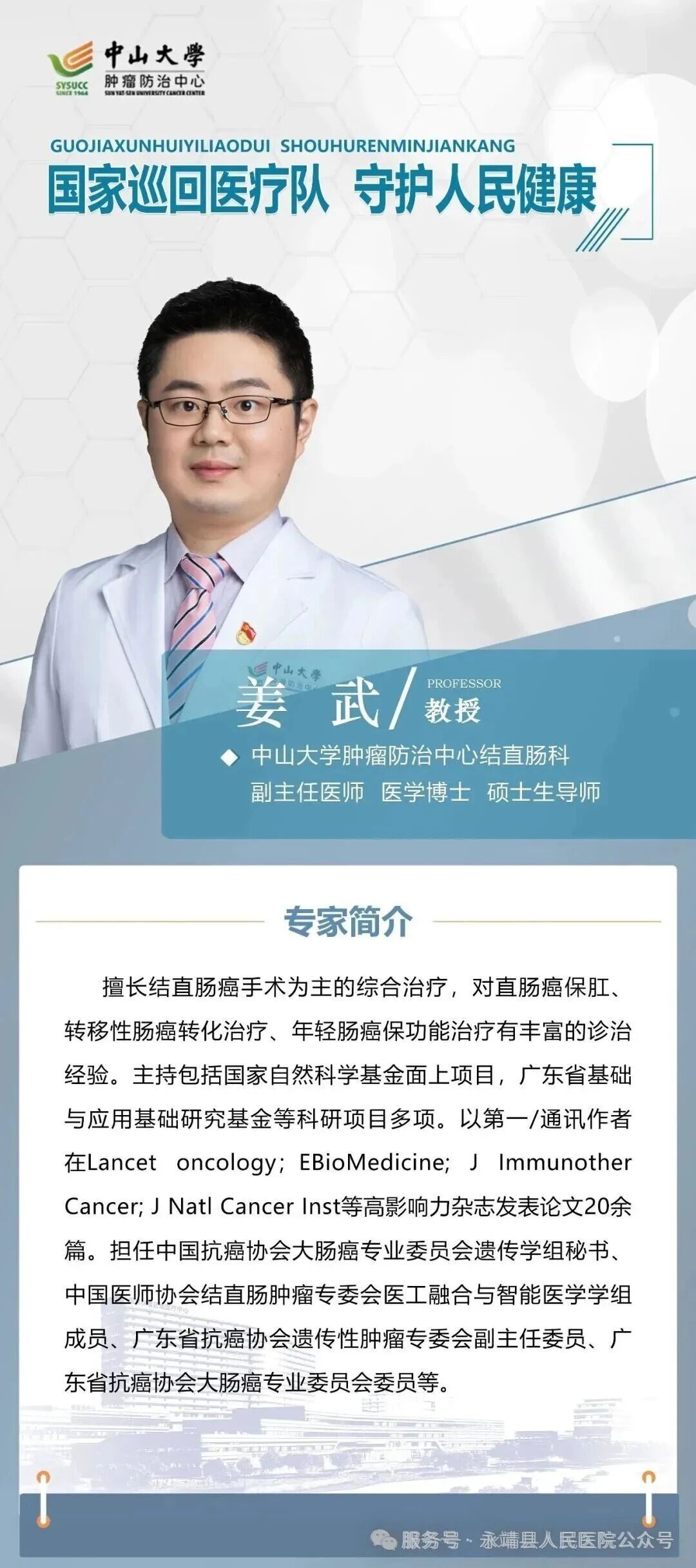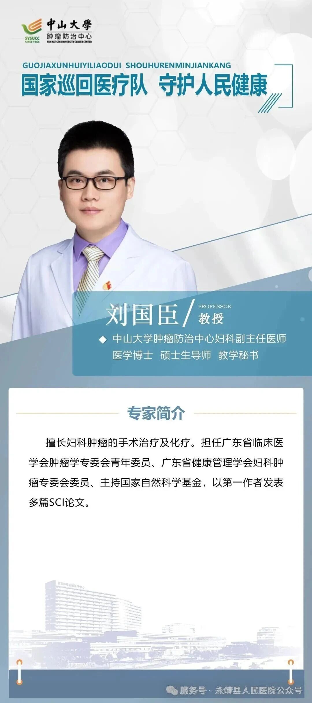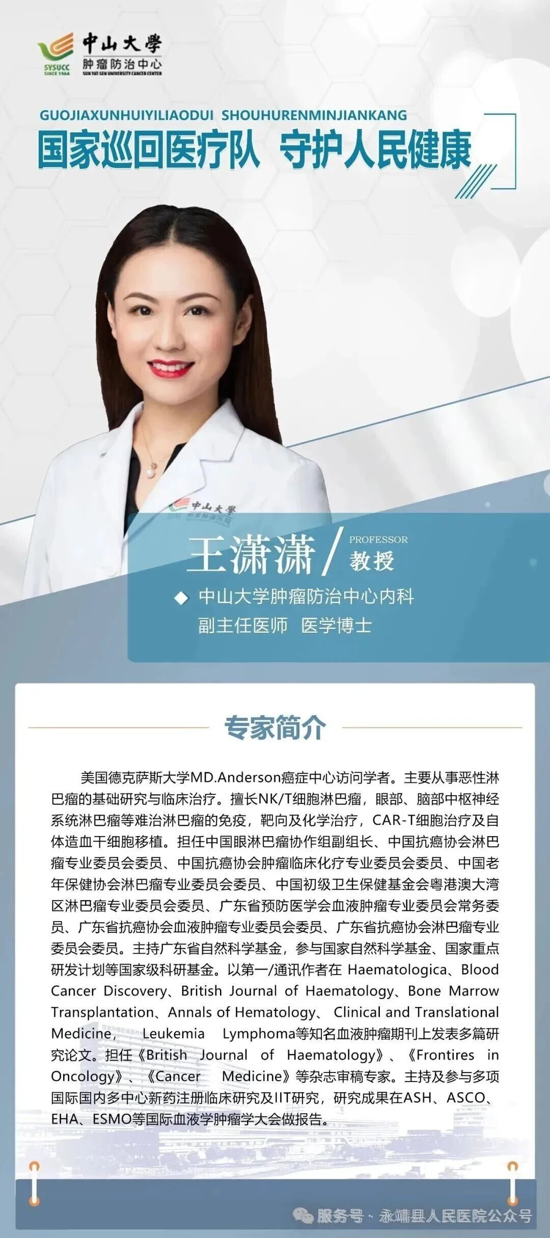 为切实推动优质医疗资源向基层延伸,让县域百姓无需远行,在家门口就能便捷享受到国内顶尖医疗服务,国家巡回医疗队中山大学肿瘤防治中心相关专家将于2025年10月20日到永靖县人民医院开展义诊、教学查房、业务培训及技术指导等活动。
