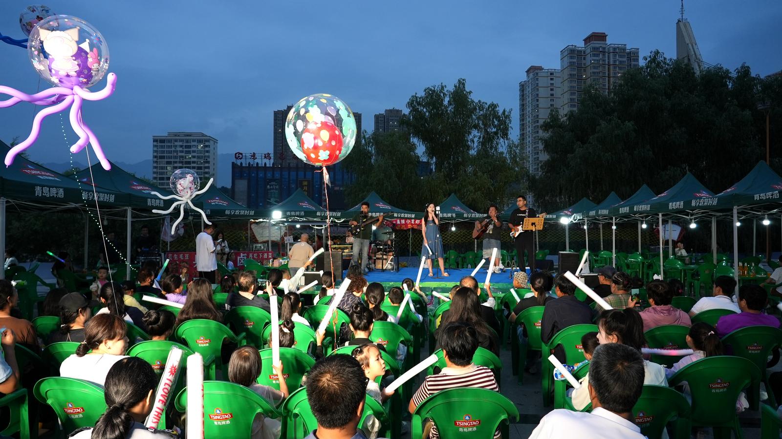 活动现场气氛热烈,本土优秀乐队轮番登台献艺。铿锵的鼓点与悠扬的琴音交织碰撞,从饱含深情的原创作品到独具匠心的经典改编,多元化的音乐风格瞬间点燃全场激情。台下观众随旋律忘情挥舞手臂,荧光棒汇成一片璀璨星河,热烈的掌声与欢呼此起彼伏,久久回荡在广场上空。绚丽的舞台灯光与奔涌的黄河水波交相辉映,营造出如梦似幻的艺术氛围。纵然晚风微凉,现场涌动的澎湃激情早已驱散秋意,让所有人沉浸于音乐编织的温暖洪流之中。