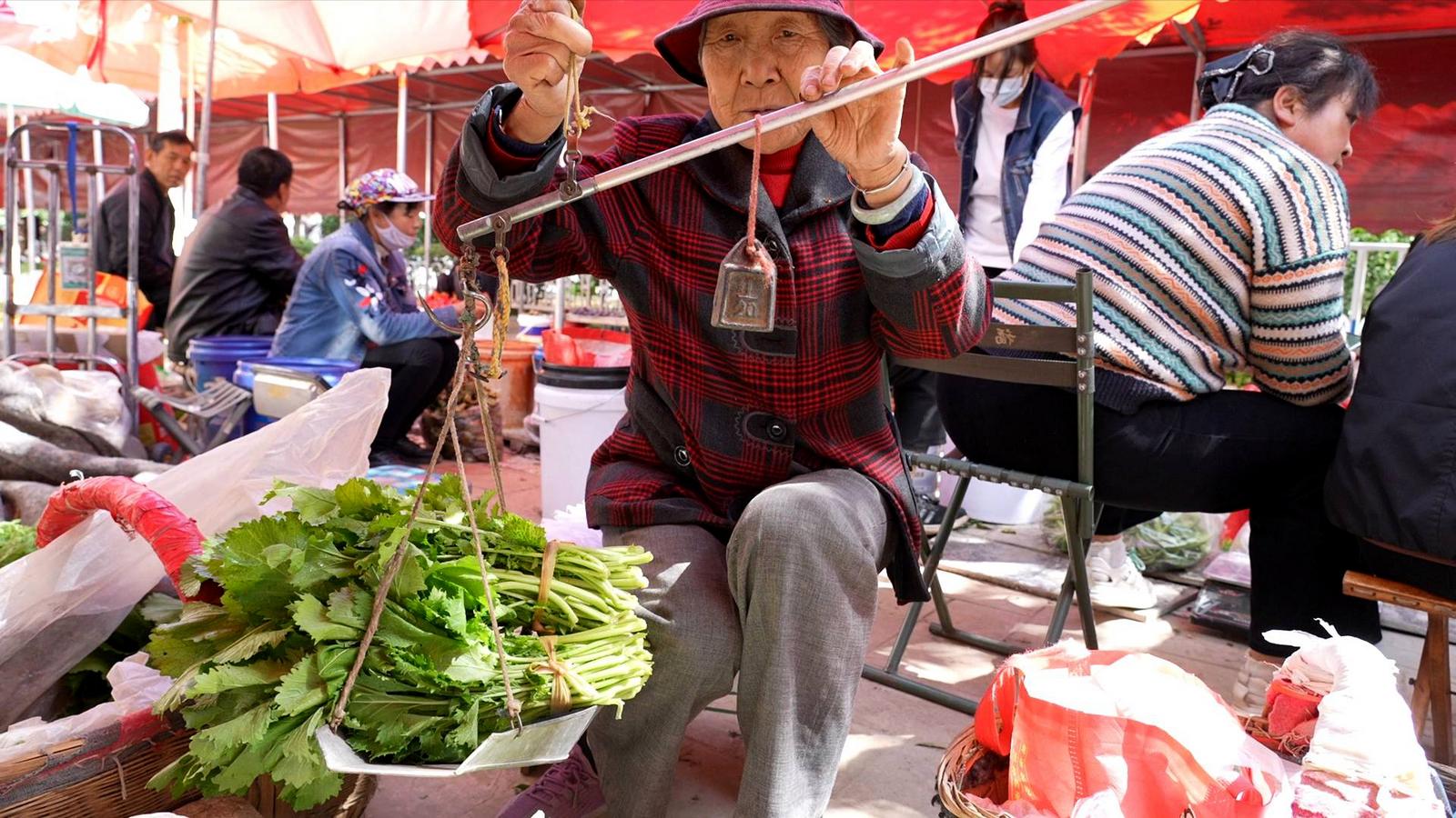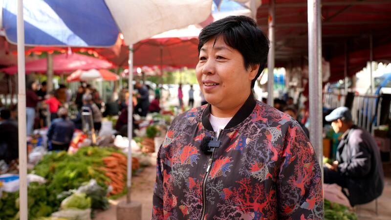 市民 孔维兰 我每天早上散完步,过来这边早市转一转,这边的菜新鲜得很,有肉类,有水果,种类很多,购买很方便。