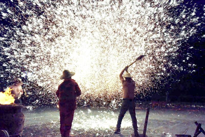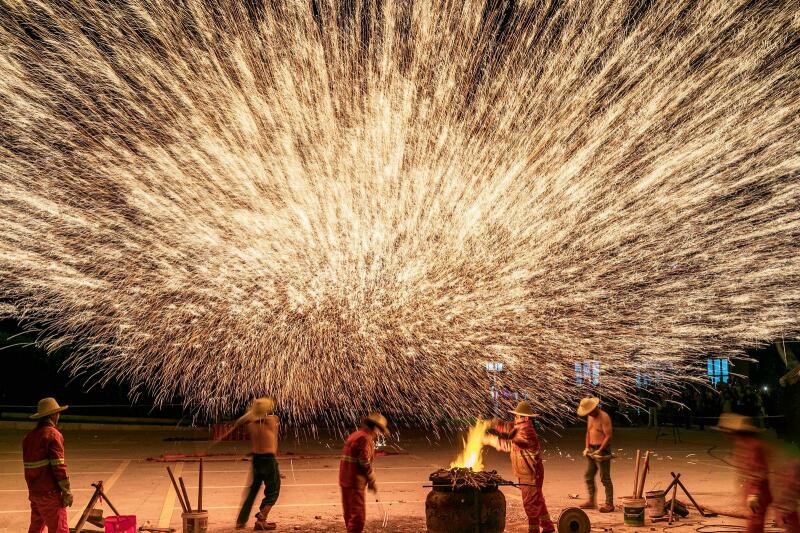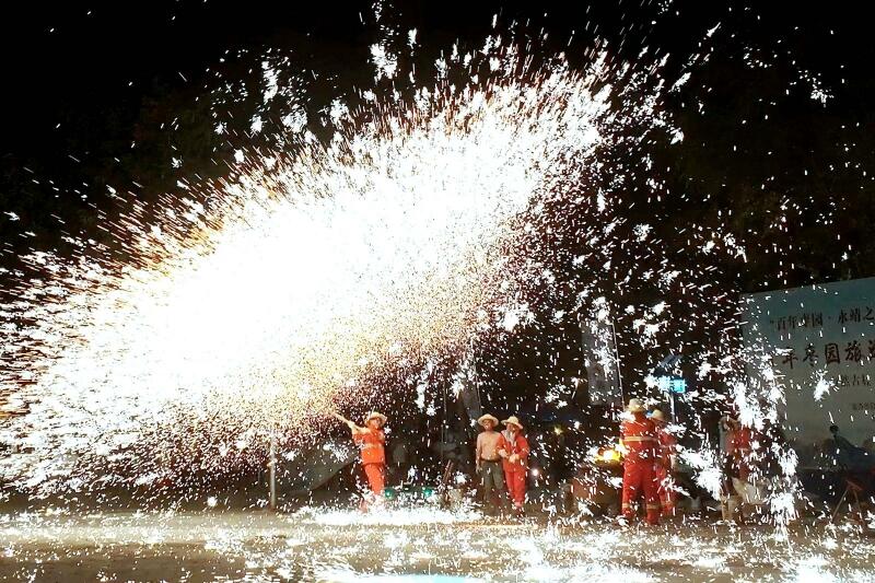 “永靖王氏打铁花”作为永靖县独有的非物质文化遗产,于2024年12月被正式列入甘肃省第五批省级非遗名录。其以铁水泼洒形成绚烂火花的传统技艺,吸引众多游客驻足拍摄,现场掌声不断。