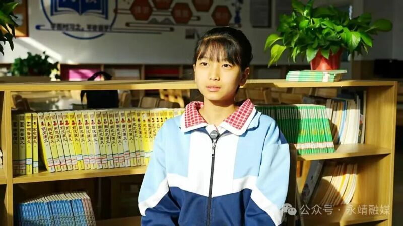 永靖县大成中学学生 孔垂福 以前在村小上学的时候,最远的同学需要步行二十多分钟才能到学校,现在从宿舍到教室只要三四分钟就够了。