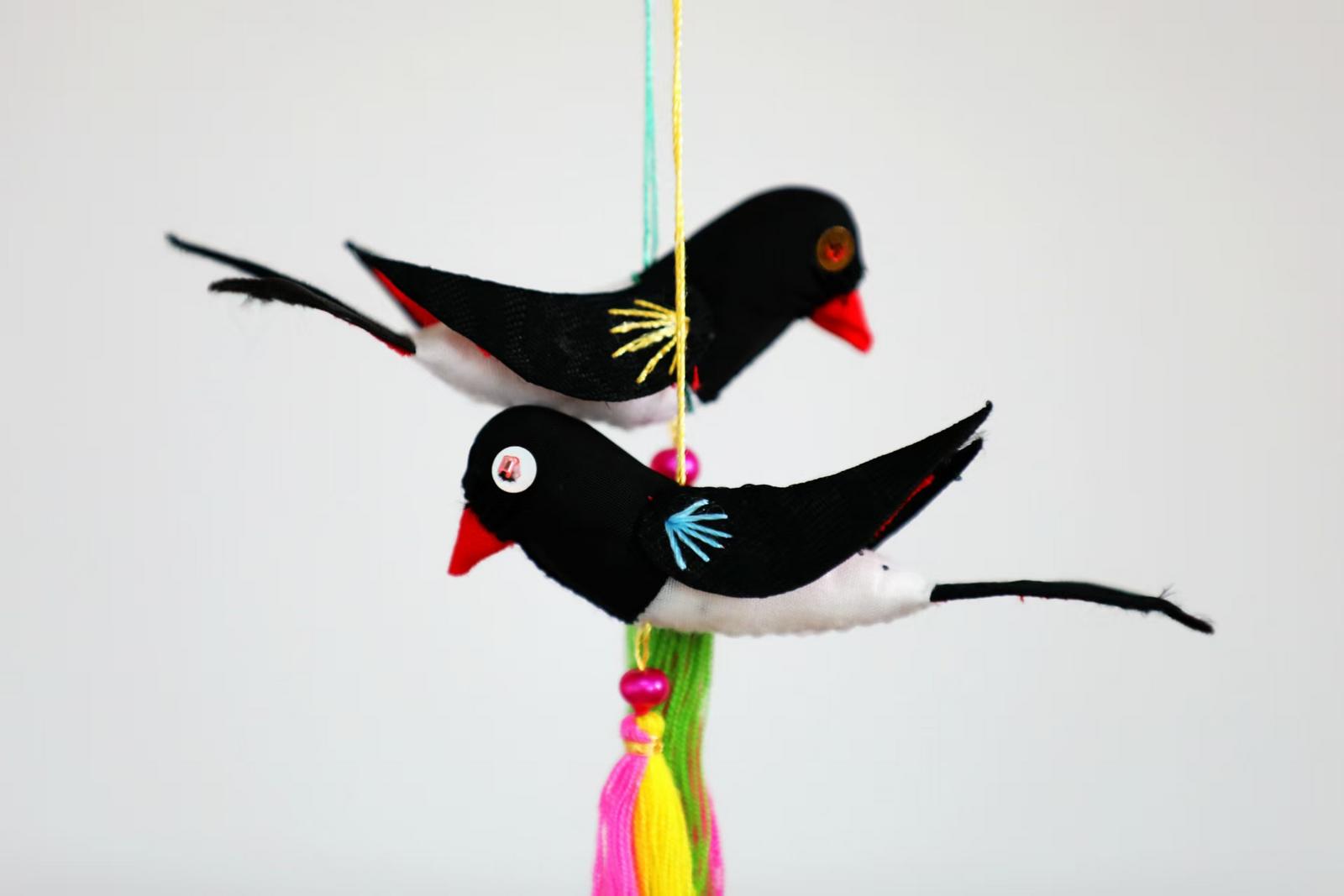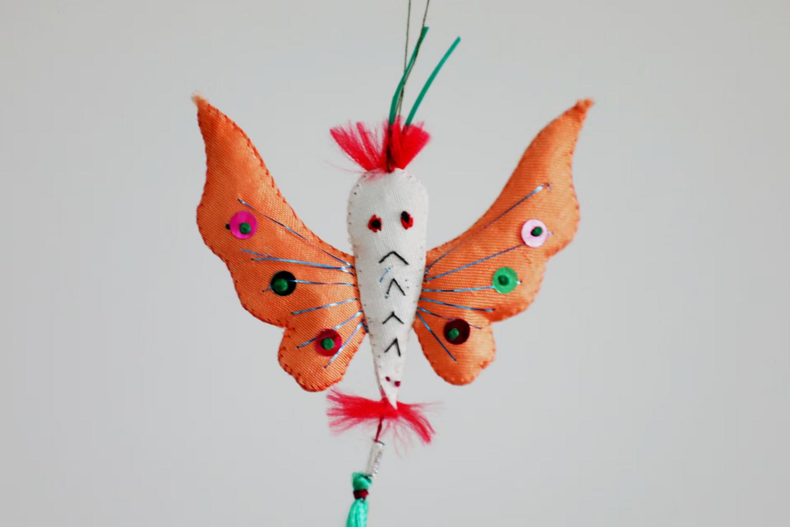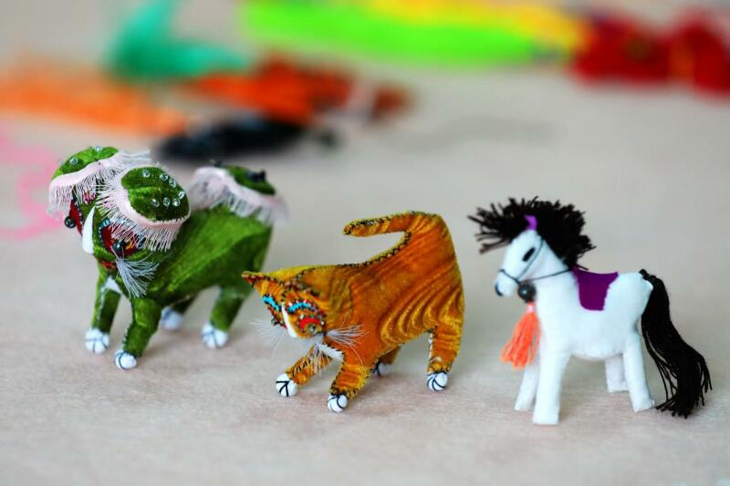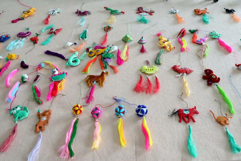 这批香包是朱洁的母亲纯手工制作而成,做工精巧,形态各异。传统五彩丝缕香包、兼具艺术性与实用性的传统针线包、朱洁逐一介绍,和工作人员一起将香包按照品种整齐分拣排列,用于分类展出。值得一提的是以十二生肖为主题的香包和骏马、老虎、蝴蝶、燕子、蝙蝠等富有中国元素的香包,各类动物形象栩栩如生、憨态可掬。豆荚针线包上的小虫子造型细致精巧,展现了传统手工艺的超高水品。