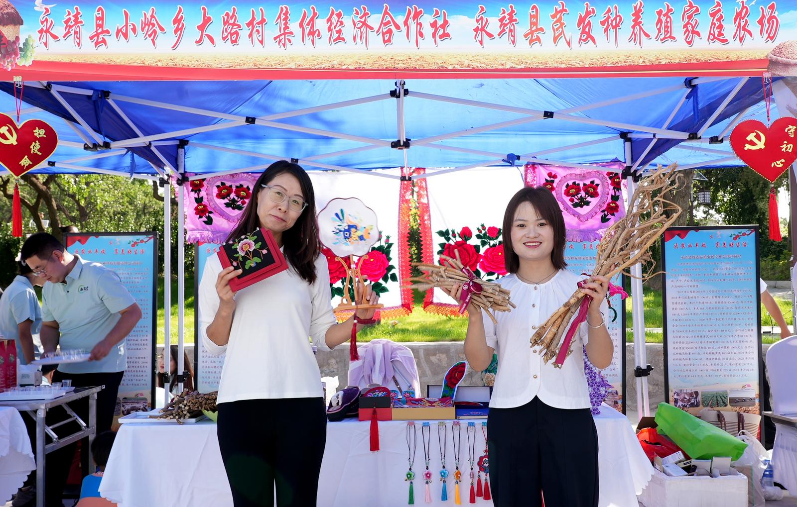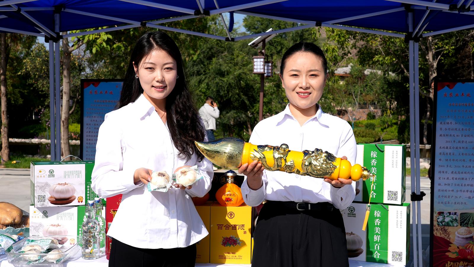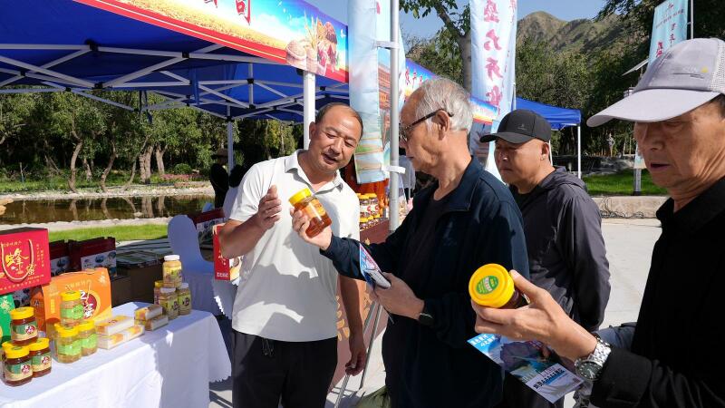 “农民丰收节”17个乡镇的农特产品展区人气爆棚。金黄的玉米、硕大的南瓜、鲜亮的苹果、饱满的黄芪、洁白的百合……各类原生态、高品质农产品琳琅满目,每一样都凝聚着农民的心血,彰显着“三农”政策的显著成效,全方位展示了永靖县农业发展成果与农民丰收的喜悦。工作人员热情地向群众介绍农产品特色与种植过程,让大家对永靖农业发展有了更深入的了解。