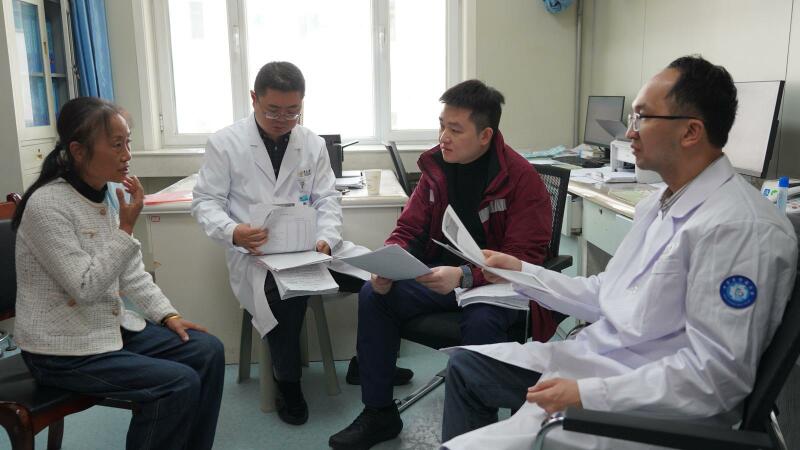 早上八点半,医生办公室内,来自中山大学肿瘤防治中心国家医疗队的杨云鹏教授早已就位,正与县医院医生一起俯身研究患者姬良军的肺部CT影像。“我建议我们再仔细看看,先去看看病人!”他边说边走向病房,在病床前细致询问患者情况。了解详情后,他耐心叮嘱:“烟,一定要戒掉。这次肺上发现结节,您先别太担心,我们会请影像科专家一起为您会诊,确保万无一失。”随后,他与县医院医生围绕该病例进行了深入交流,为患者制定了周密的诊疗方案。