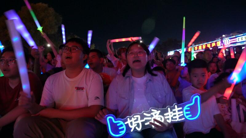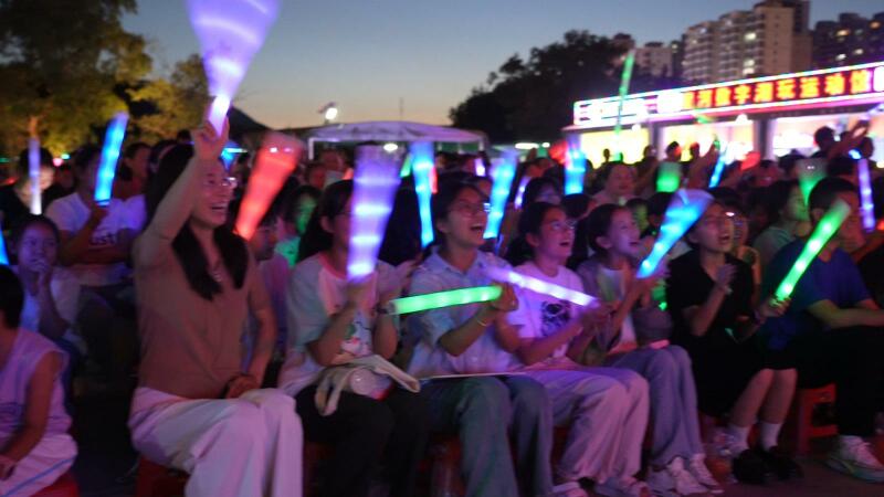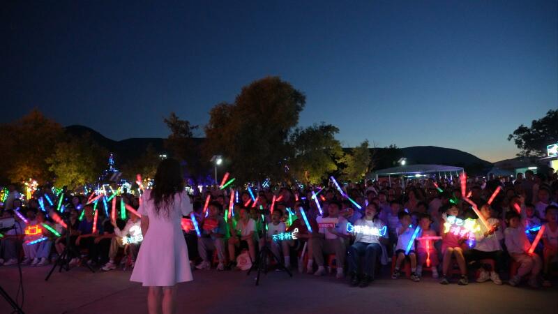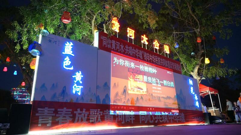 夜幕下的星河欢乐田园,荧光点点,歌声嘹亮。经典曲目《没有共产党就没有新中国》《社会主义好》《我和我的祖国》《大中国》《如愿》等红色歌曲响彻黄河岸畔,台上专业歌手领唱,台下观众自发加入,形成数百人同声高歌的震撼场面。