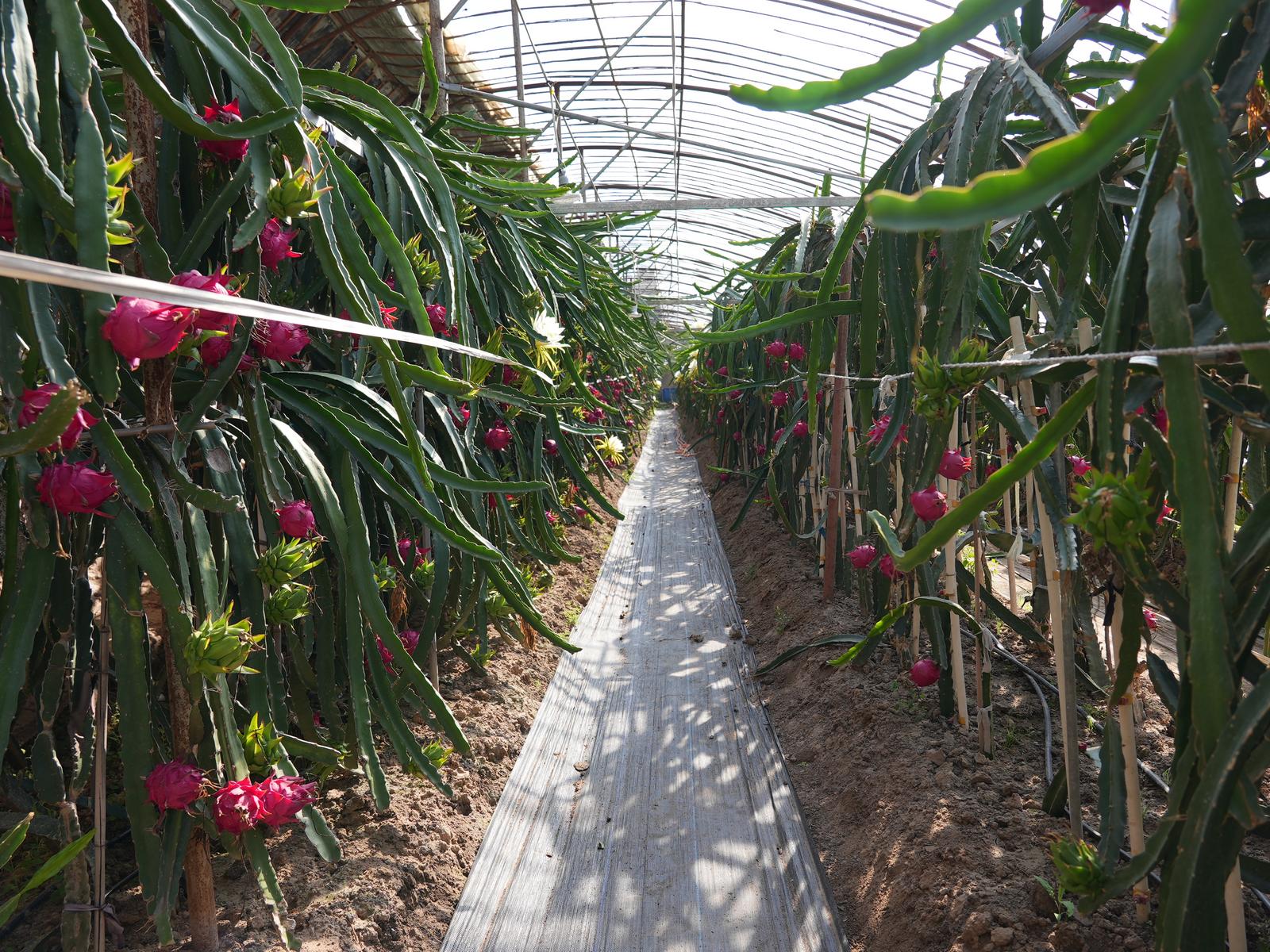 据了解,该火龙果基地于2018年8月建成使用,目前种植四个现代化农业大棚,主要种植台湾红水晶、金都一号、以色列进口的无刺黄龙等品种的火龙果,目前一个大棚的火龙果年产量可达6000斤左右。