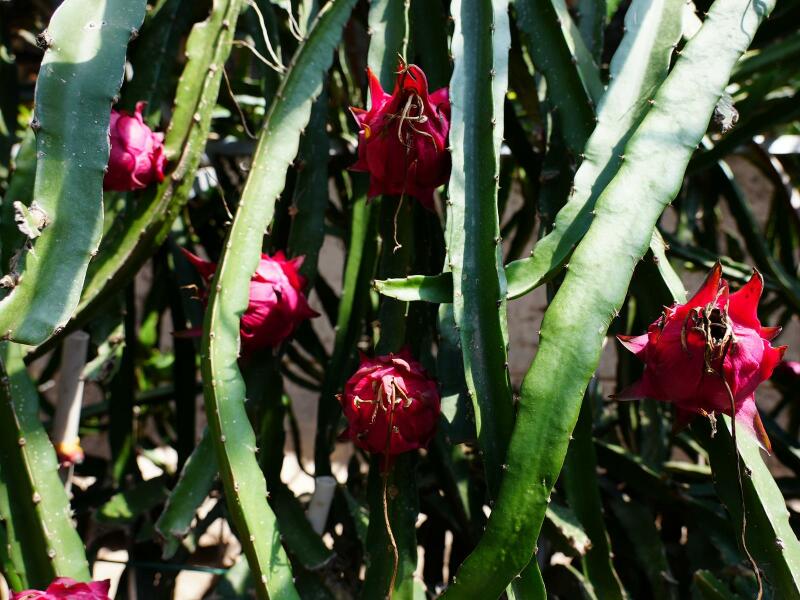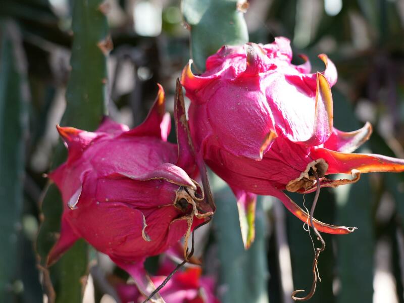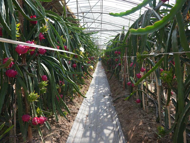 火龙果作为一种营养丰富的水果,富含维生素、矿物质和膳食纤维等多种营养成分,深受消费者的喜爱。基地通过建立温室大棚,配合增光灯、保温设施等技术条件,控制大棚的温度和湿度,为火龙果生长提供适宜条件。并采用人工辅助授粉和土壤无公害施肥的精心地培育和管理,有效提高了火龙果的坐果率、新鲜度和品质。