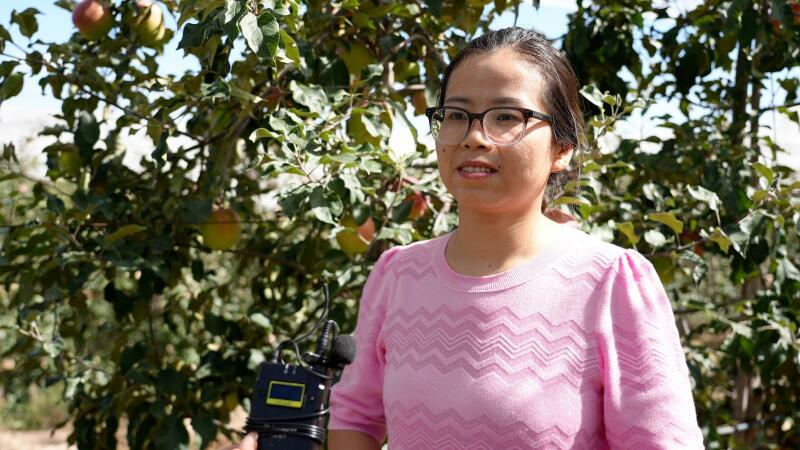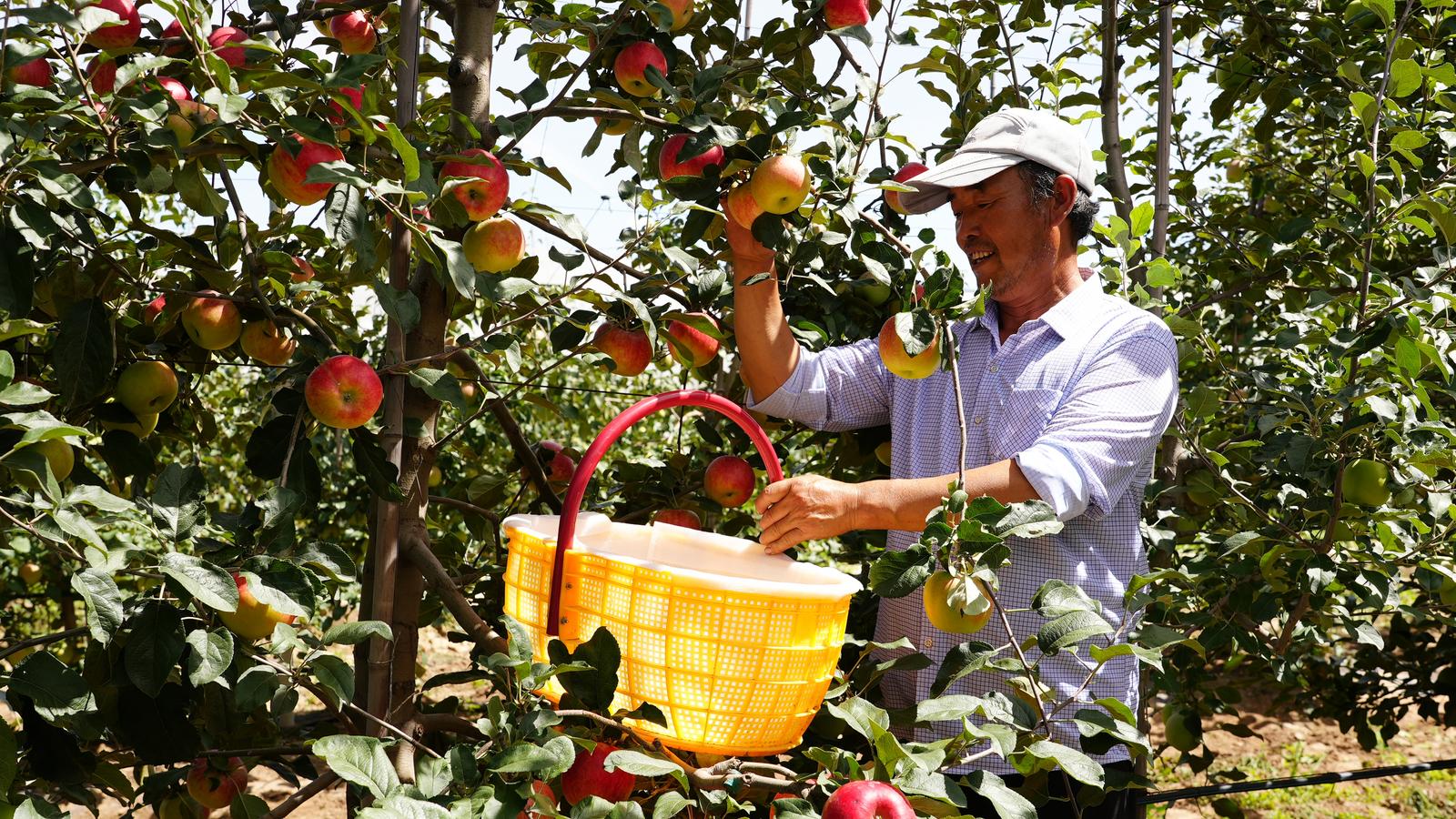 这片苹果园的建成,给岘塬镇刘家村的村民们带来了实实在在的好处,自从果园落地后,部分村民便在这里稳定务工,从果树养护到果实采摘,都能参与其中。