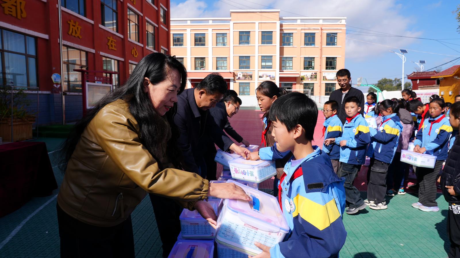 10月17日,永靖县妇联在王台中心小学举行中国儿童少年基金会“HELLO小孩”公益项目爱心套餐发放仪式。