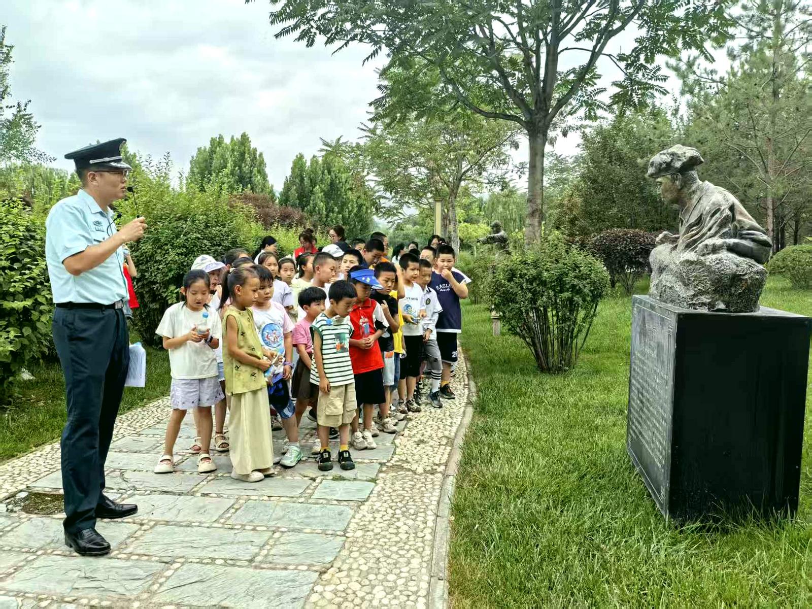 活动现场,退役军人与孩子们开展了一场跨越代际的“精神对话”。参与者们一同参观了社区服务功能室,感受社区“家”的温暖;随后前往双拥主题公园研学,在展板与雕塑前重温“军爱民、民拥军”的动人故事。