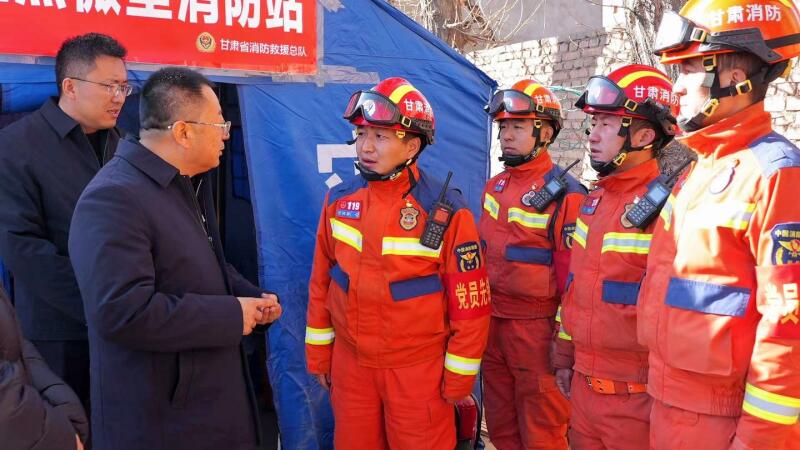 随后,李登旭一行来到大河家中学、大河家镇周家村、刘集乡团结村,以及柳沟乡卫生院、居集镇居集小学,详细了解我县公安干警、民兵、消防员、工程人员、医护人员、支教教师等救援人员的工作吃住情况,并对大家在抗震救灾中闻令而动、挺身而出、分秒必争、连续作战的工作作风和奉献精神表示衷心的感谢并致以崇高敬意。他强调,当前抗震救灾仍处在关键时期,希望大家时刻保持勇担当、善作为的主动状态,扛起职责,冲锋在前,以极端负责、认真细致的态度全力做好转运救灾物资、守护群众安全、搭建临时安置点、危房评估拆除等工作,为积石山县受灾群众温暖过冬和灾后重建作出更大贡献。同时,要全力保障好支援积石山救援人员的后勤和安全。