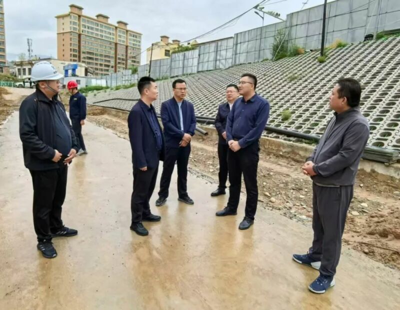 在项目施工现场,刘斌斌详细查看了项目建设进度、施工计划、资金保障、材料调运、安全生产等情况,并与项目主管单位、施工单位、监理单位负责人认真交流,研究解决存在的困难问题。
