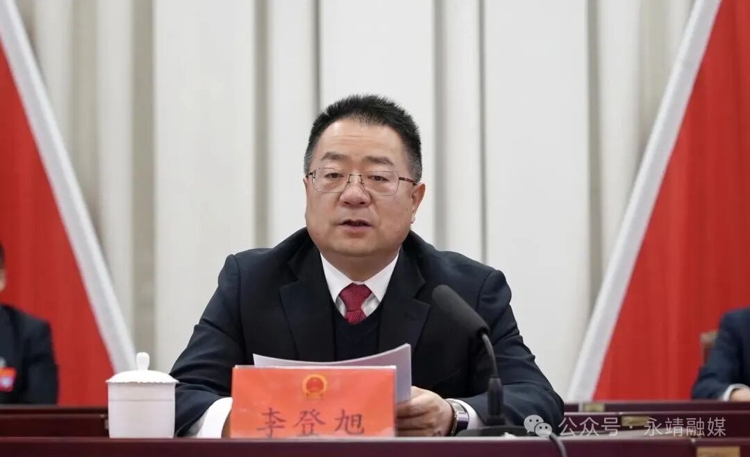 县委书记李登旭在闭幕大会上讲话。他首先代表县委向大会的圆满成功表示热烈祝贺!向新当选的县人民法院院长、县人民检察院检察长表示祝贺!向全体人大代表、列席会议的同志以及为大会顺利召开辛勤付出的工作人员表示衷心的感谢!他说,这次大会是在全县上下深入学习贯彻党的二十届四中全会精神的关键时期召开的一次十分重要的会议。会议期间,各位代表牢记使命、不负重托,充分发扬民主、认真履行职责,体现了敢于担当、高度负责的使命意识,展示了奋发有为、昂扬向上的精神风貌,彰显了顾全大局、忠于人民的政治品格。会议听取和审议了县政府、县人大常委会、县法院、县检察院工作报告,审查批准了计划、财政预算及“十五五”规划纲要。大会通过的各项决议,充分反映了全县各族人民的共同意志和发展愿望,必将极大地激励全县各族人民,满怀信心向着建设幸福美好新永靖的宏伟目标奋勇前进。大会还依法选举产生了县人民法院院长、县人民检察院检察长。大会开得很成功,开出了高举旗帜的政治自觉,开出了奋发有为的坚定信心,开出了团结奋进的强大合力,开出了风清气正的良好形象。